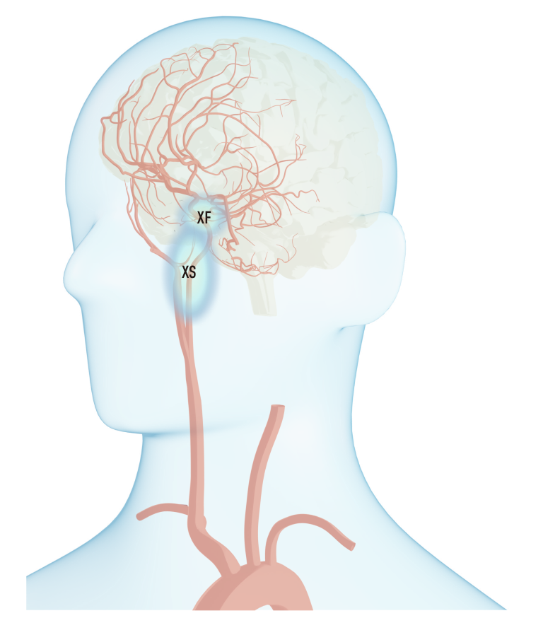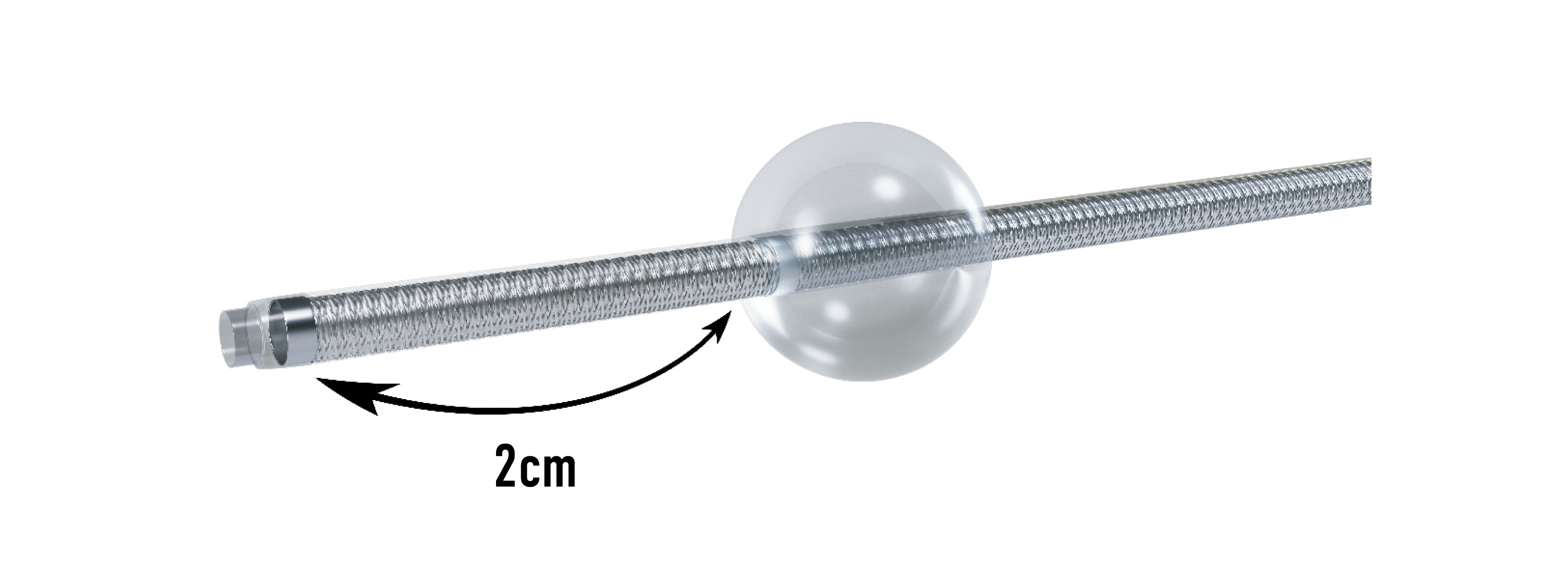 The XF has an extended 2cm nose, which enables the tip to be located in the petrous segment and the balloon to be inflated in the cervical segment.