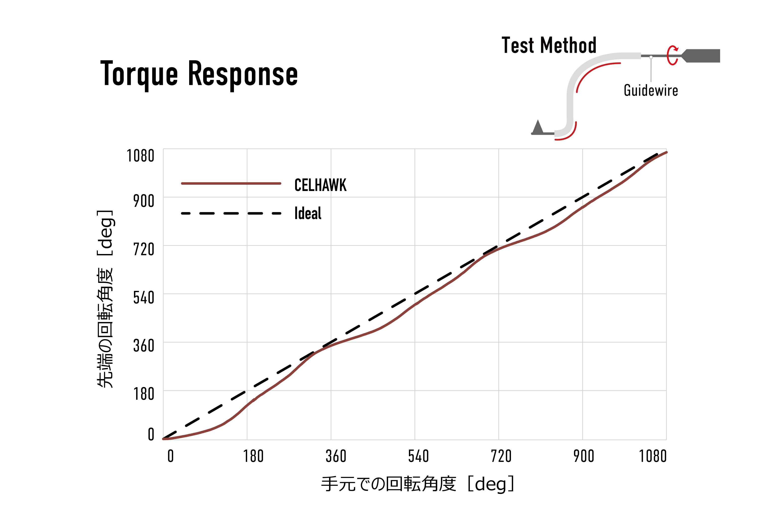 *当社ガイドワイヤのTip load の値は、社内標準テストをもとに、ガイドワイヤ先端が病変を押す力を想定した値です。実際の製品の値には個体差があります。