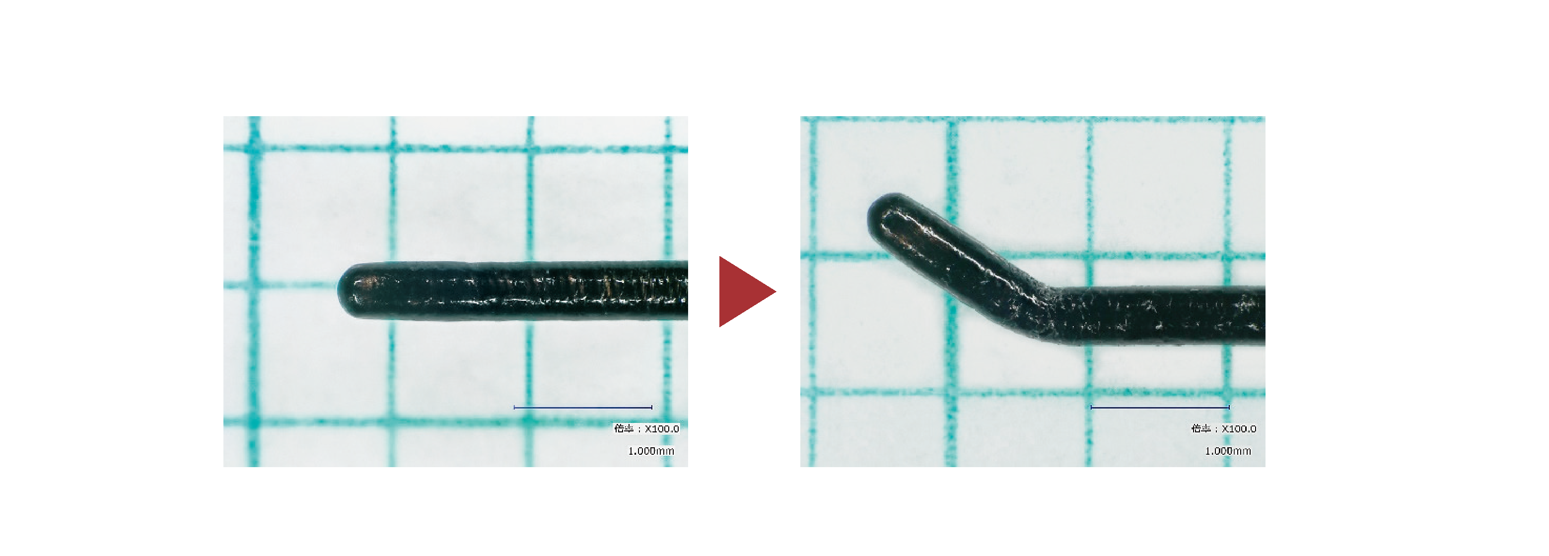 ナイチノールコアでもステンレスコア同等のトルクレスポンスを発揮